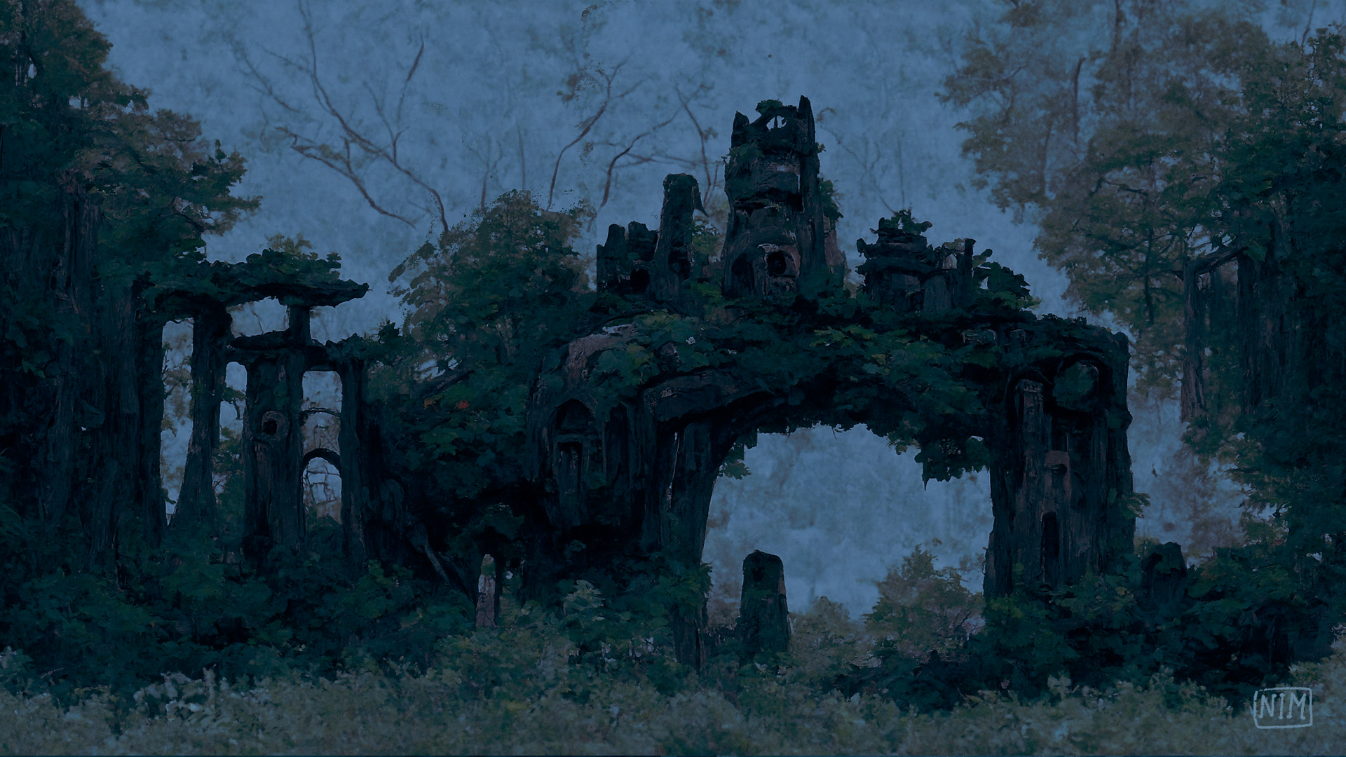 Forest ruins background